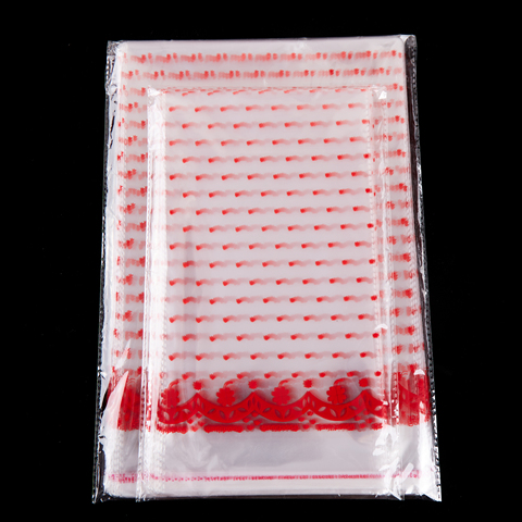OEM Red Polka Dots Candy Biscuit Embalagem Opp Bag DIY Baking Auto-adesivo Bag Transparente Bopp Plastic Oppbag